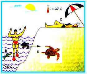 02. Como são classificados, em relação à temperatura corporal, os animais desenhados abaixo?