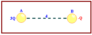 02. Assimilando as duas esferas a um ponto material para efeito do cálculo da força eletrostática de interação entre elas e separando A e B de uma distância d, a força eletrostática entre elas é F.